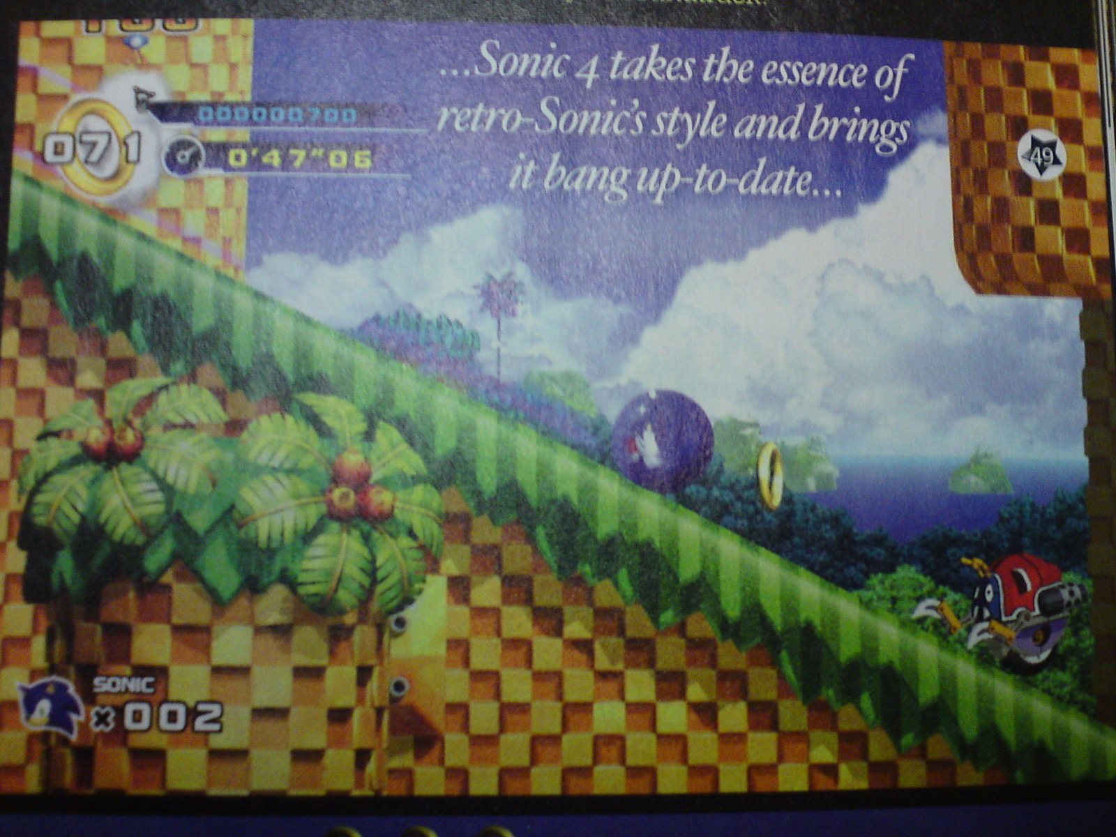Abaixo, temos três imagens de uma revista do Reino Unido actualmente desconhecido mostrando mais do Splash Hill em Sonic 4: Episódio I. Os exames foram primeiro enviados por Sonic forumer Retro Wolf Rogers, a maioria parece ser novo, pelo menos na Internet.